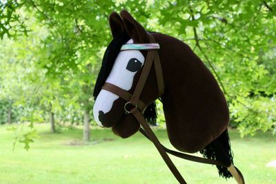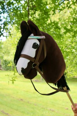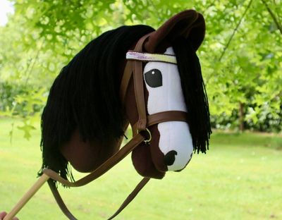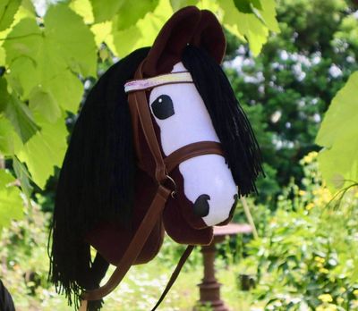 Beautiful brown hobby horse with a long mane for braiding and hair accessories.